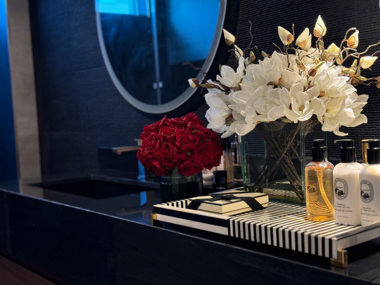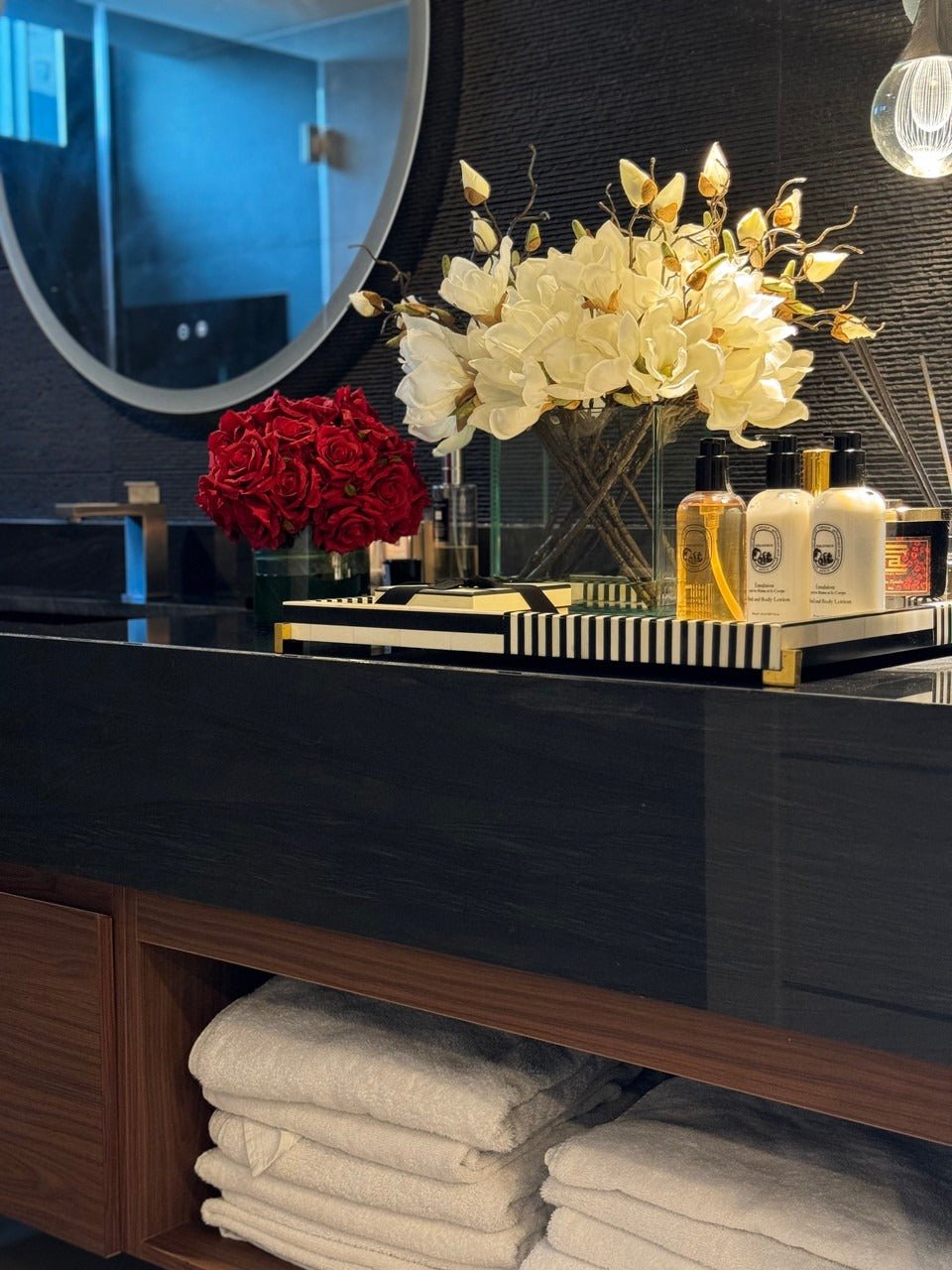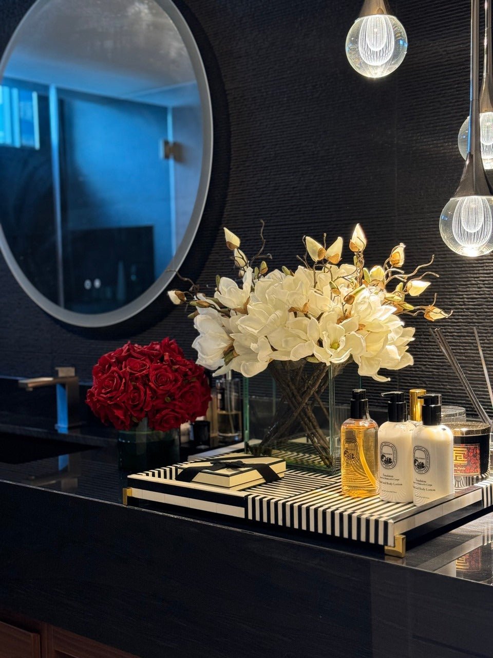 - Available in peach or white magnolias.