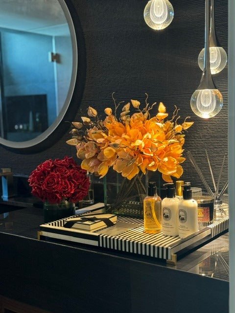 Square Casa Moderna glass planter with multiple stems of peach OR white magnolia blossoms. foliage and sand blasted grape wood anchored in our illusion water. Enjoy beautiful. lifelike magnolia tree branches that won’t fade after spring awakens. Displayed here in a stylish clear glass planter. magnolia flowers are cheerful and elegant in any season. Each hand-placed blossom and leaf is crafted with vivid color and exceptional detail. a tribute to Mother Nature’s artistry. Showcase this lovely faux tree on your dining table or living room tabletop.